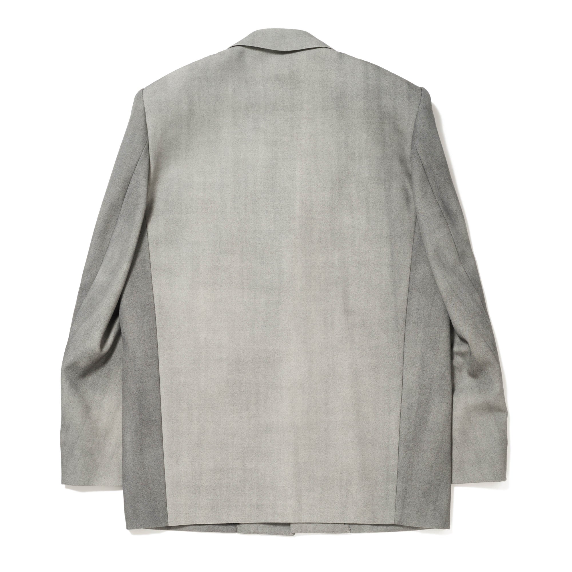THIS TAILORED JACKET USES FABRIC SPRAY-DYED TO INTENTIONALLY CREATE COLOR VARIATIONS. ITS CLEAN SINGLE-BREASTED SILHOUETTE IS SUBTLY ACCENTUATED BY A BACK PANEL WITH NO CENTER SEAM.