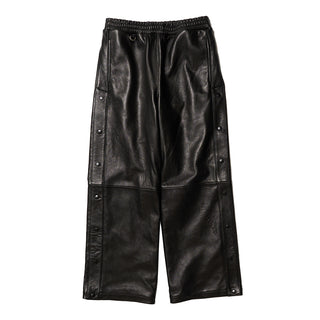 スポーツとラグジュアリーが融合した革新的なデザインのレザーパンツ。スポーツウェアを思わせるディテールと両脇にあしらわれたスリットデザインが特徴的です。スポーツウェアなのに上質な羊革を使用するという、このパンツにしかない違和感をお楽しみください。