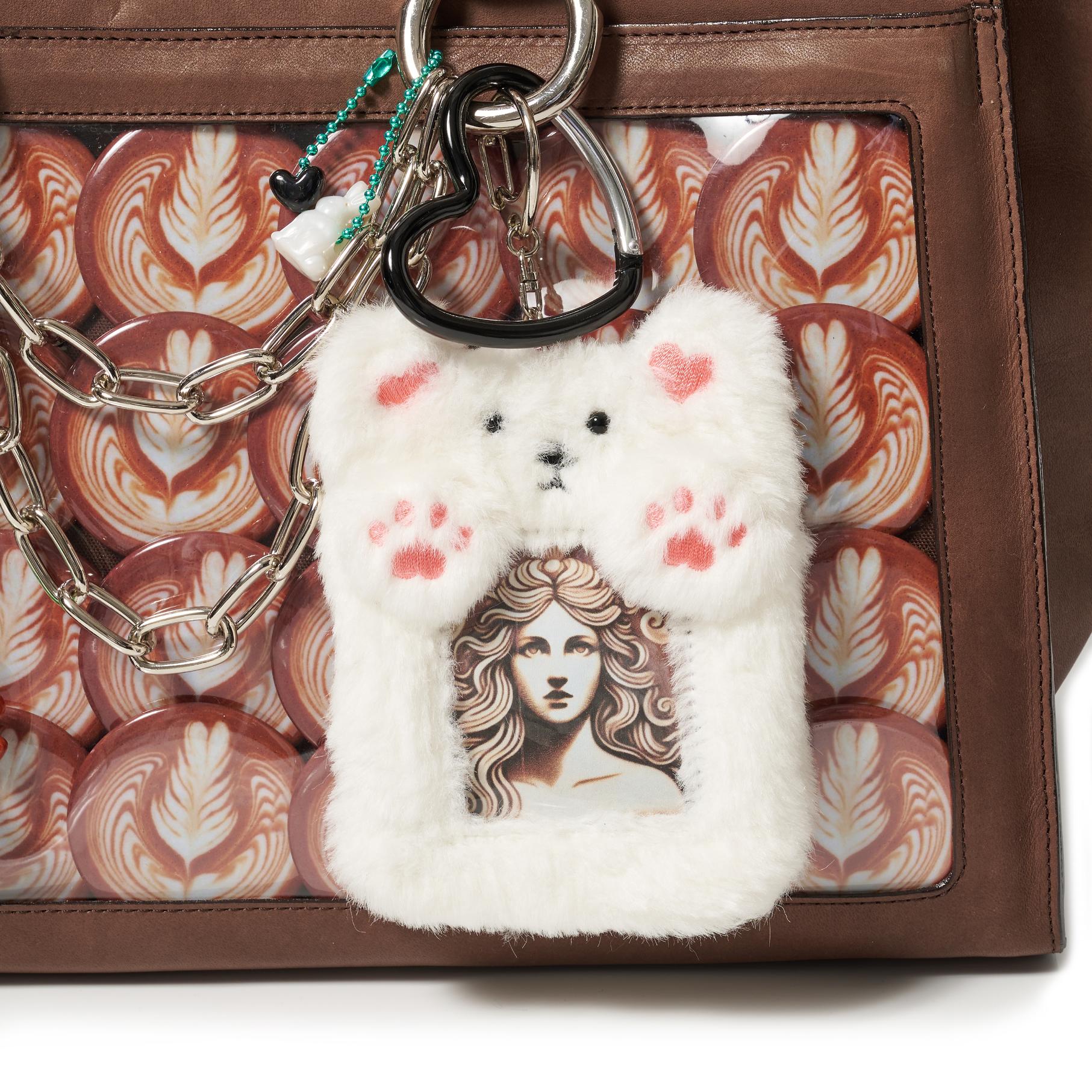 抹茶やコーヒーなどの製造時に出る「残渣(ざんさ)」を革のなめしに再活用してできた革を使用したレザーバッグ。好きなアイドルやキャラクターのキーホルダーや缶バッジをたくさん飾り付けた「痛い」バッグ、通称“痛バッグ”をモチーフにしています。