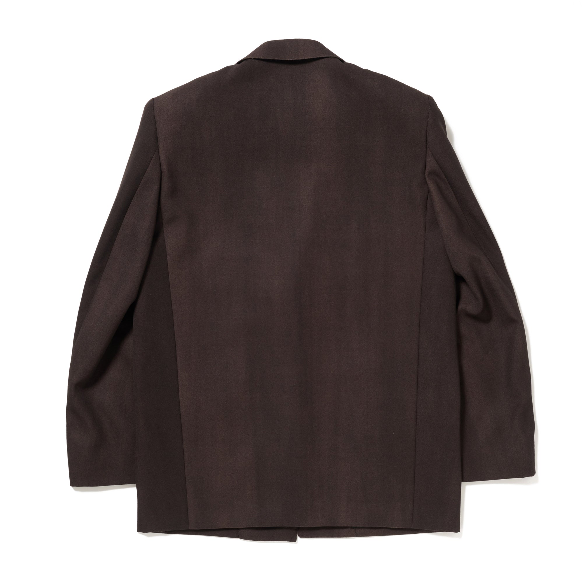 スプレーで染色し、色ムラの表情をあえて残した生地を使用したテーラードジャケット。シングルブレストの端正なシルエットに、背中の継ぎ目のない仕様がさりげなく個性を添えています。