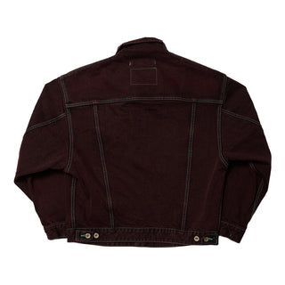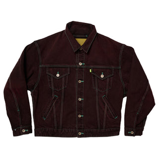 元来、銅製のリベットに似合う色として金茶色のステッチが使われていますが、このジャケットでは、薬草のイメージに合うような緑色のステッチを使用しております。また襟部分は、生地が首に沿うことで肌との接触面積が増え、癒し効果が高まるよう設計しています。着る人の健康を考えたこのジャケットが、着用するたびにあなたに寄り添い、快適な日常をサポートし、癒してくれたら嬉しいです。