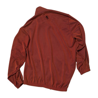 滑らかな肌触りと動きのある光沢感が特徴のキュプラ混のジャージ素材を使用し、色褪せたような加工を施しヴィンテージ感のある表情に仕上げたトラックジャケット。最大の特徴はそのシルエットで、ジョージ・A・ロメオの映画に出てくるゾンビの動き方を立体裁断で表現した独特な型紙になっており、着用することにより生き生きとしたユニークなドレープが現れます。